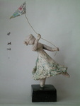 2008Een beeldje van een spelend kind met en heel aparte uitstraling,Naturel,grove chamotte met oxides