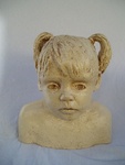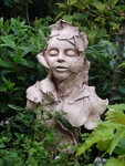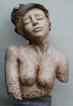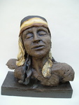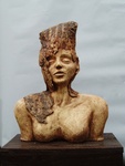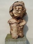 2007Oermoeder, godin van de natuur Een buste met fantasie, tooi met schorseffect. Grove witte chamotteklei, afgewerkt met pigmenten, ongeglazuurd. Natuurlijke uitstraling