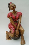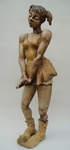 2007Een sculptuur uit de serie 'Big feet'.Met een glimlach. Gemaakt van grove chamotteklei afgewerkt met engobe en mangaanoxide. De proporties van de schouders en de voeten versterken de verlegen houding.