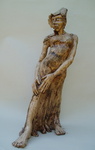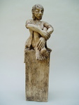 2007Beeld van witte chamotteklei, afgewerkt met oxide en transparant glazuur. Uit de serie big feet. Grote voeten en handen geven dit beeld een aparte uitstraling.