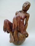 2007Sculptuur zittend op een bal. uit de serie 'Big feet', beeld met humor met een wetlook.